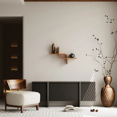 Medinė Pakabinama Lentyna „CurveLine“ – Banguoto Dizaino