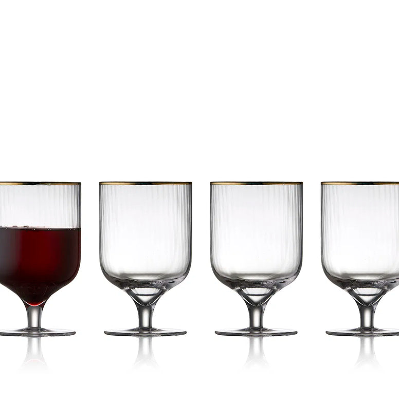 Išskirtinės išvaizdos Palermo Gold universalios taurės su elegantiškomis briaunomis bei auksiniu krašteliu. Vintažinio stiliaus vyno taurės puikiai derės prie Jūsų namų interjero.