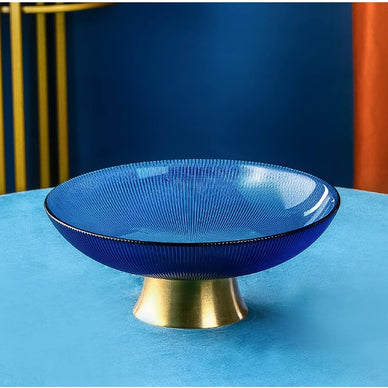 Lėkštė vaisiams stiklinė mėlynos/auksinės sp.